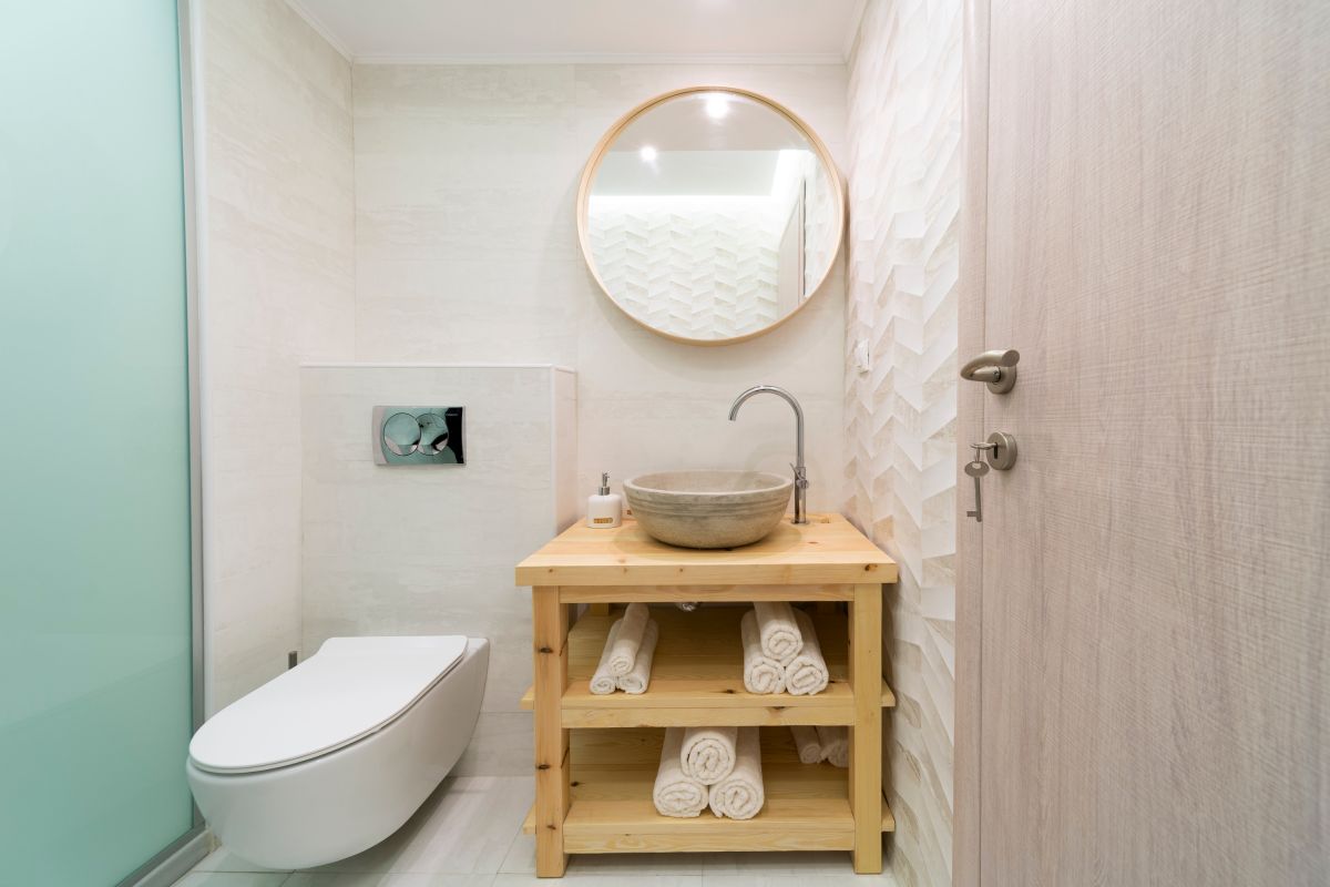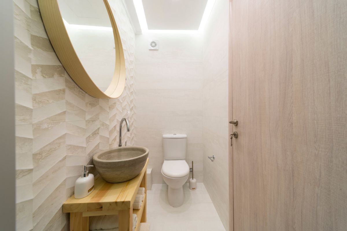The Apartment, located on the first floor, spans 69m2 and has been tastefully renovated in a modern design, featuring full air conditioning for your comfort. This spacious apartment boasts two bedrooms, each furnished with a double bed (1.60×2.00m), and two bathrooms equipped with showers. Additionally, the living room includes a sofa-bed that can accommodate an additional 2 guests when converted into a double bed. The fully equipped kitchen ensures all your culinary needs are met during your stay.