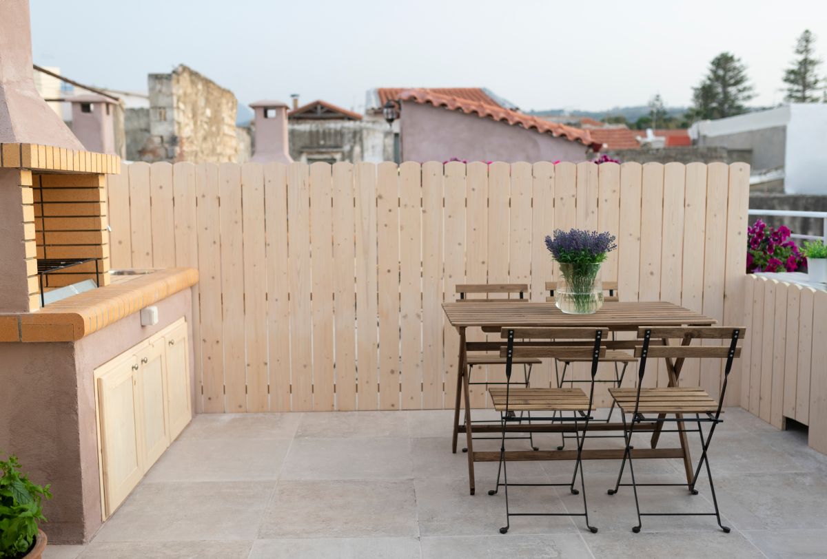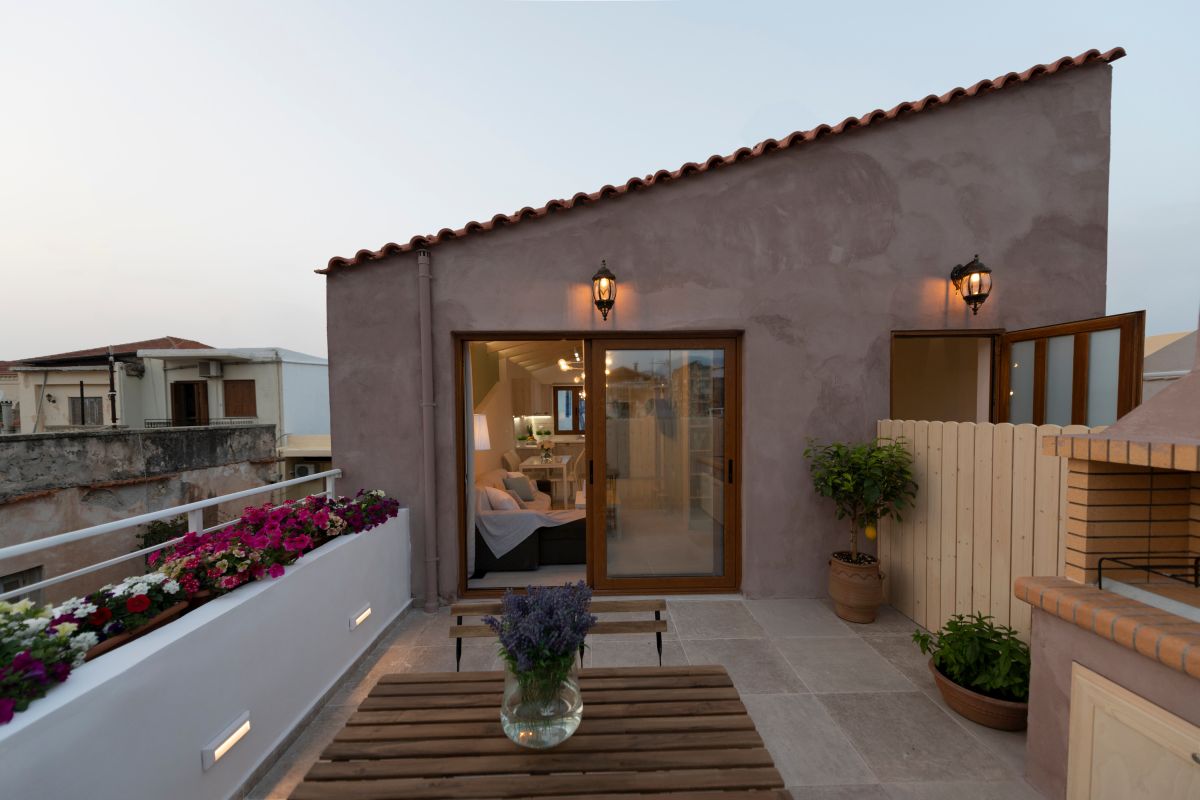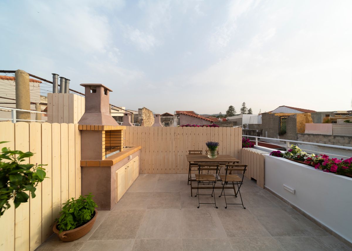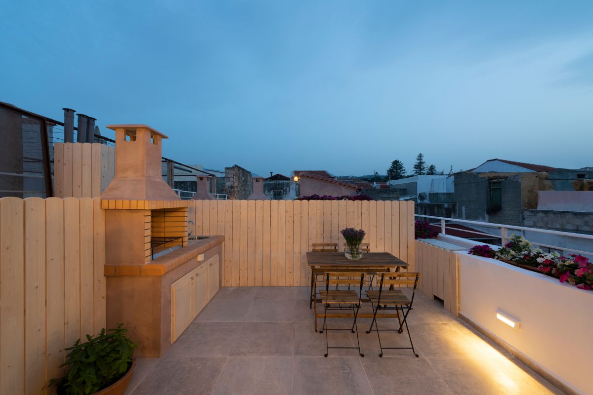 Outside, the loft boasts a charming terrace and a private roof garden complete with a charcoal BBQ—perfect for relaxing on warm summer evenings. The BBQ invites you to savor the flavors of Cretan Mediterranean cuisine, renowned for its healthfulness and popularity. For those seeking fresh ingredients, the open market in Rethymno city offers high-quality traditional products ideal for culinary creations.