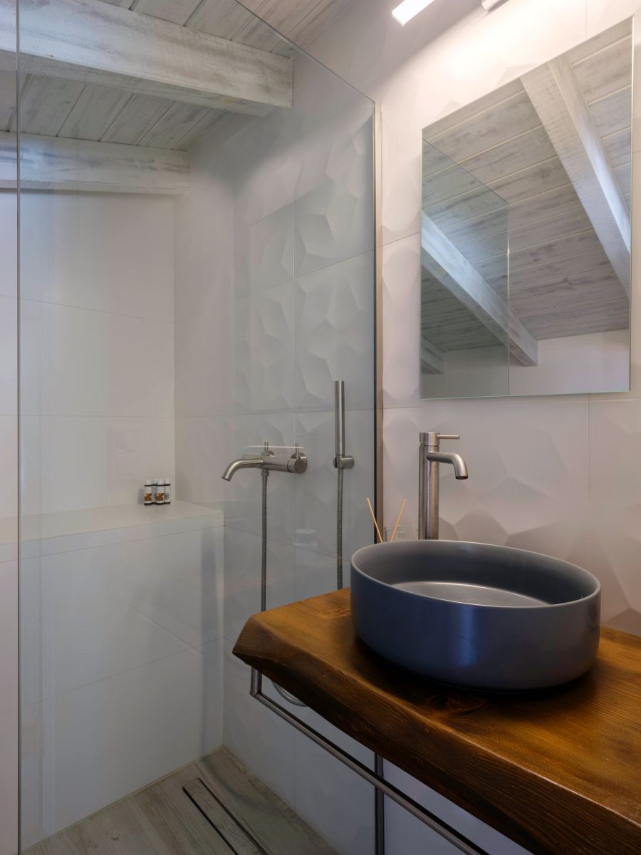 The house covers 55sqm and consists of two floors. Entering the villa, the open space living room and fully equipped kitchen makes the house ergonomic, as moving from the kitchen to the terrace with the BBQ makes everything easy to use. There is a modern romantic atmosphere created on the ground floor, where is the open space bedroom with a double bed (160x200cm) and an open-style wardrobe. The modern bathroom has a shower with hydro-massage.