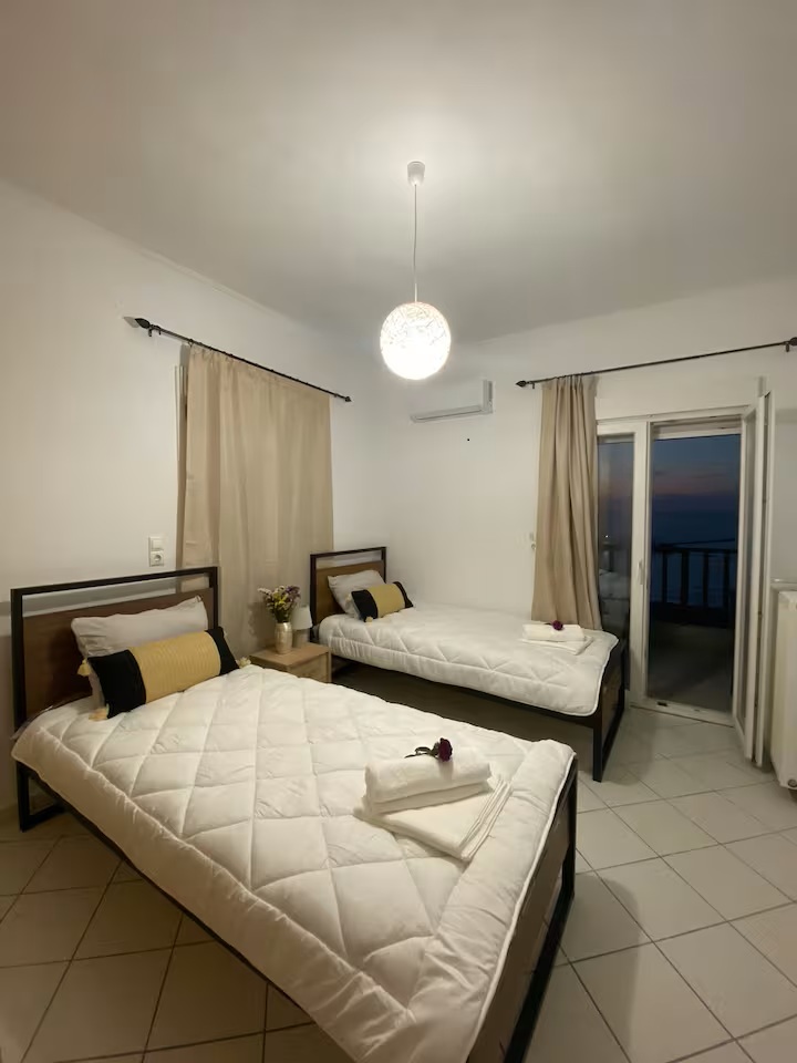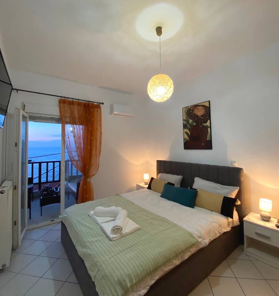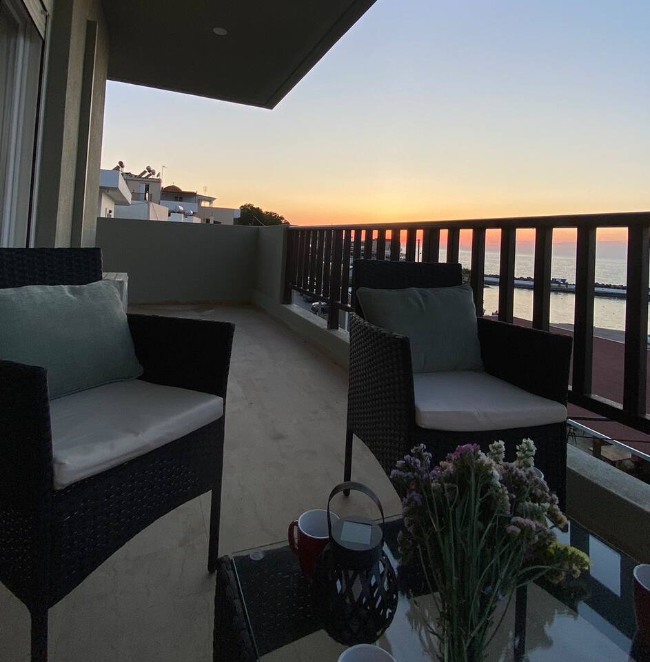 A bright two-bedroom seafront apartment in Panormo village at Rethymno, Crete.