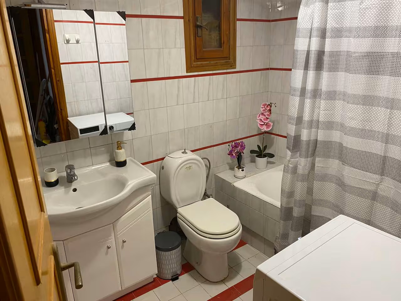 The apartment comfortably hosts up to 6 guests with one double bed, two single beds, and two cozy sofas. Step out onto the balcony and enjoy uninterrupted views of the Mediterranean, ideal for morning coffee or a sunset glass of wine.