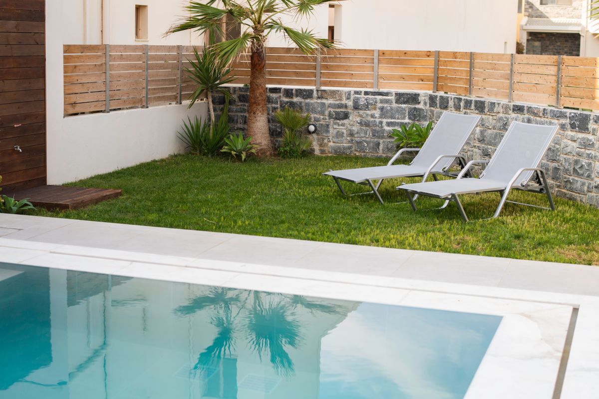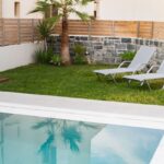 The private garden with the swimming pool (30sqm) looks like private paradise! From the terrace you can feel the water of the swimming pool! It is just next to it! Is a relaxing wonder! There is a shallow part in the swimming pool that is ideal for the kids to play, but also relax into the water while enjoying the summer sun! Equipped with a wooden gazebo and sunbeds on the grass there is nothing missing for sunbathing.