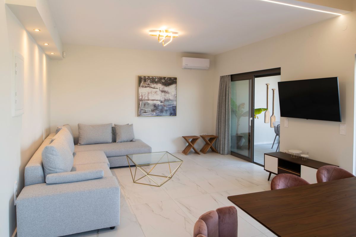 Adelianos Kampos, the charming suburb where the villa is located, rests peacefully by the sea, just 6km from the bustling city of Rethymnon. Offering a plethora of mini markets, shops, restaurants, and bars, it is an ideal haven for those seeking relaxation near the beach, away from the hustle of crowded towns. Moreover, its strategic location makes it perfect for discovering the wonders of Crete.